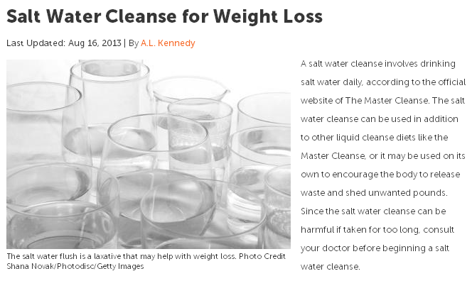 Among the many colon cleansing options available to you, 'salt water flush' (also known as 'saltwater cleanse' or 'master cleanse') is one of the best natural solutions for cleansing the colon and detoxifying the body. This way you absorb the solution as much as possible and get the most "cleansing" effects. Here is the salt water flush recipe 1 that you should follow: There are several other detox drinks or. You can also use plastic, but we use glass as a …